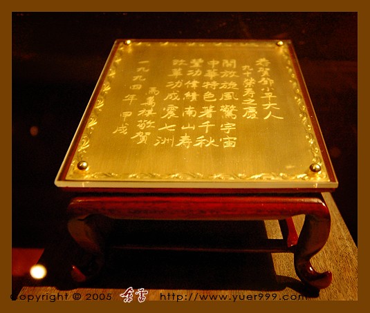 澳门知名人士马万祺赠送给******的寿牌