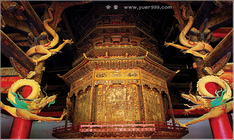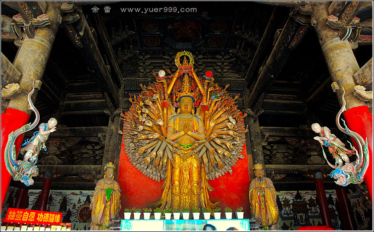 寺内供奉的木雕千手观音和转轮经藏皆为稀世珍品,与千姿百态的蛟龙、奇巧华丽的斗拱,清一色的楠木构造,五百年不结蛛网并称为“报恩寺六绝”。