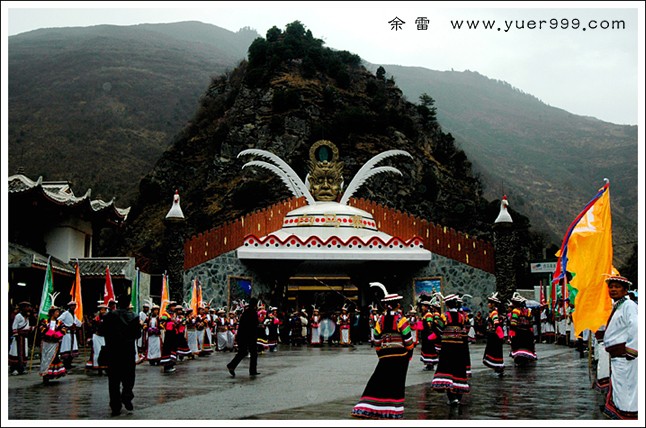 | 车行至北川白马山寨寨门,天下起了雨。