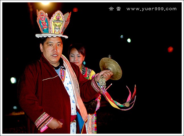 伴着熊熊篝火,白马小伙子跳起了传统的驱魔舞蹈,德高望重的长者摇铃颂经,为大家祈福。