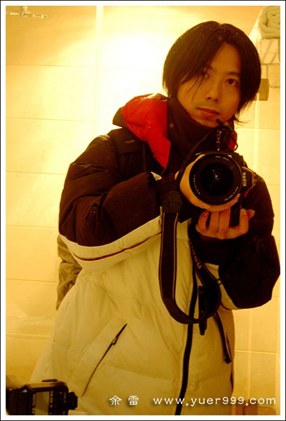 回到房间,赶紧收拾相机和身上的雪水。回身看到镜子里的我和租借来的羽绒服。