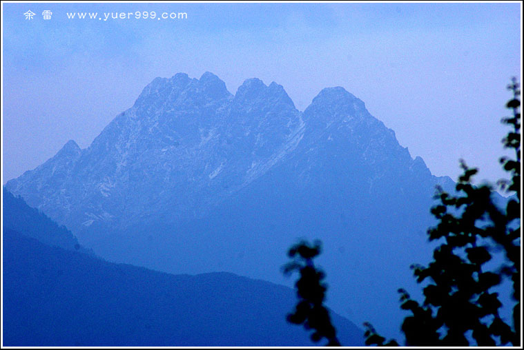 车行进在小鱼洞镇,远远望去,神秘的雪山在雾霭中若隐若现。