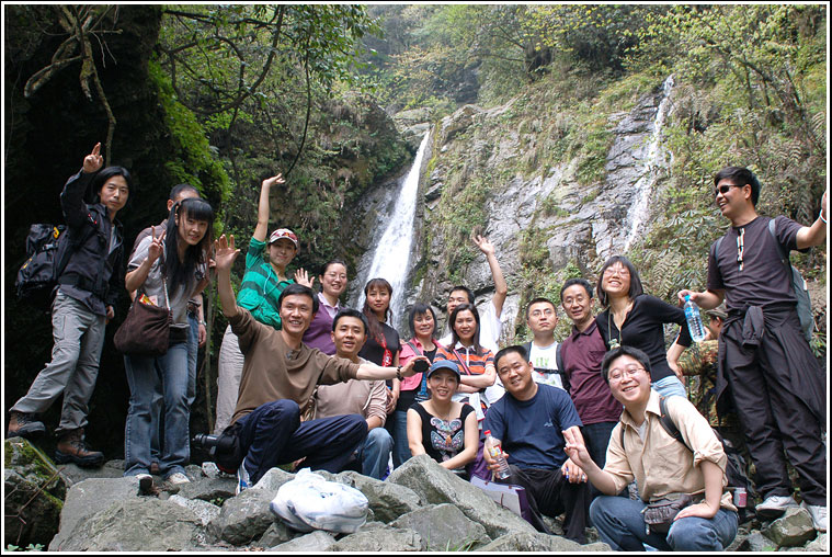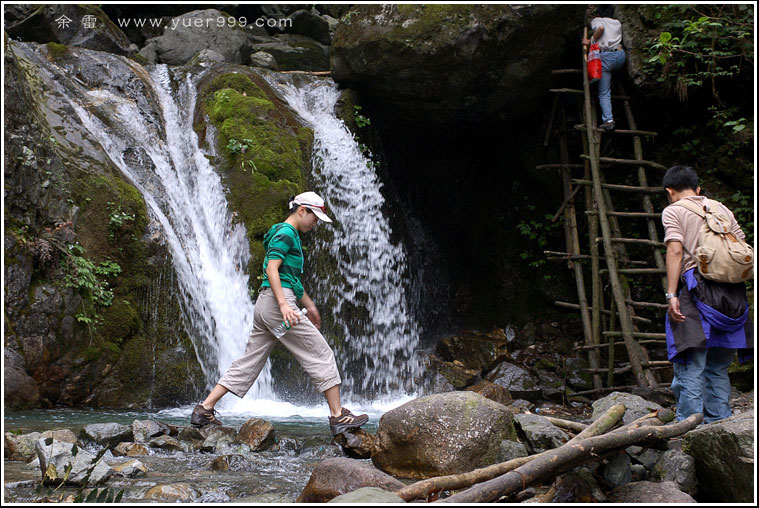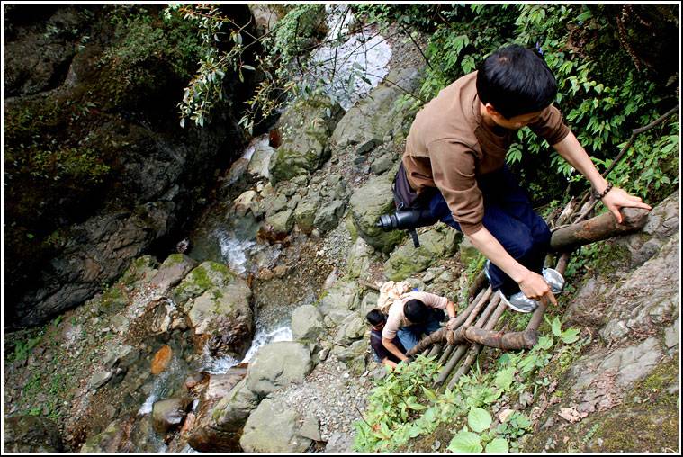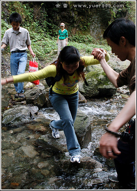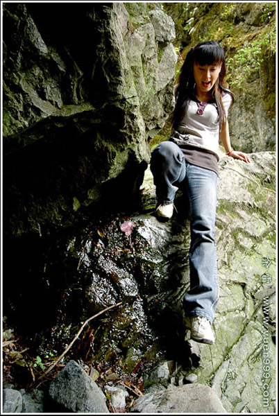 追溯着越来越美的溪流,路(如果这也算是路的话)更是越发的难走,慌忙中忘了形象,手脚并用。只求那些个美女不要突发一声尖叫,吓得大家胆战心惊哟。