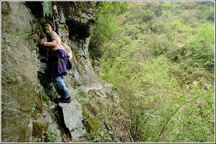 定神一看!我的妈呀,要从那悬崖上过去呀,哪能过吗?! 不过实在是没勇气再走那段“钢丝”回去,只得拼了(不过总是要返回的呀!唉,先不想它,再说吧)。