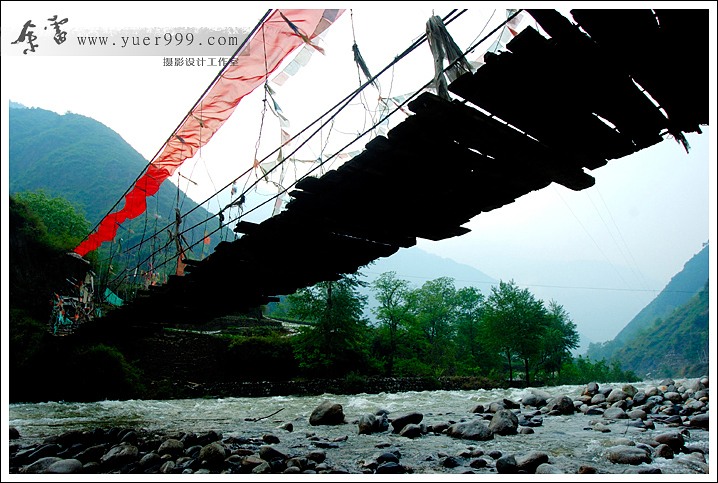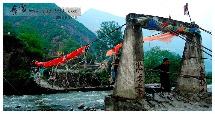 次日清晨,我先独自在臧家寨子里转了一圈。早餐后,随大家一起到了奇特险峻的四门关古堡脚下。先要走过一个索桥,桥头标有“危桥,游客止步”字样,偏有好事者还要在上面晃荡几番,免不了又一阵惊呼惨叫声在山谷中回荡开来。