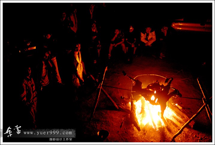 且慢,实在该填填肚子了。急急慌慌的吃饭,准备着与篝火的进一步共舞。不想饭没吃完即被告知这里住宿安排不了,我们一部分人得下山返回上孟乡。唉,郁闷!没办法只好拿起背包,望望狂舞的篝火,带着对还是半熟的羊肉的无限依恋,我们几个向漆黑的山路摸索而去。大家借着手机微弱的光线照明,好不容易连滚带爬的找到我们的车,一路颠簸返回到上孟乡驻地。