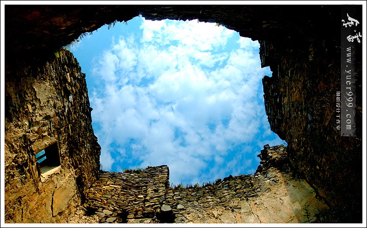 然后进入堡内,仔细看那每一块片石,手摸摇摇欲坠的门框,在一片寂静中,我似乎就要听到百年前的回声了。站在中央,仰望没有屋顶的天空,蓝天白云被古老的残壁包围起来,像一幅厚重的油画,一时间,豪情、落寞、欲望、无为……心情翻腾不息。