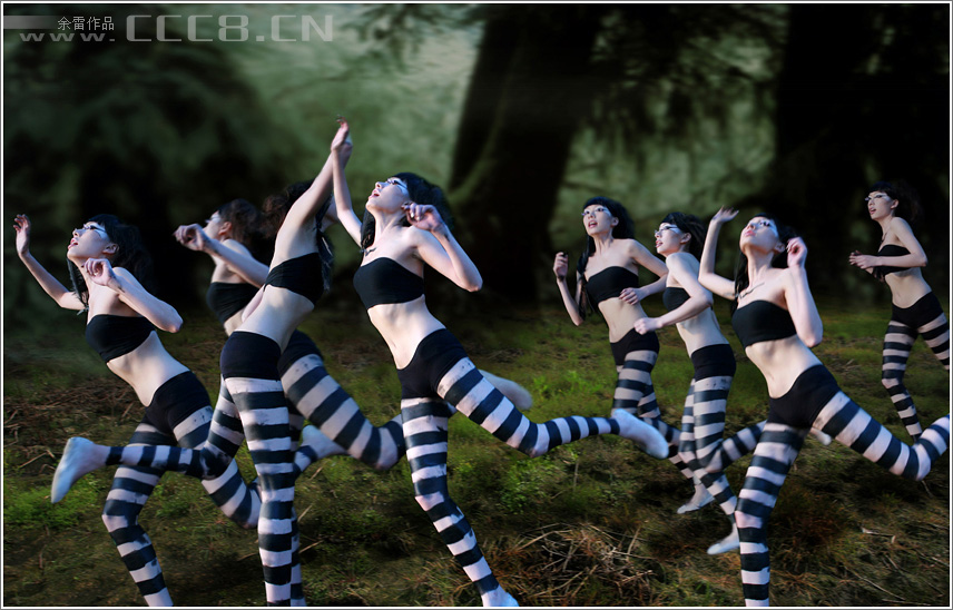 天很快就全黑了,我们在漆黑的树林里摸索着拍摄。我不得不叫朋友们用手机去照亮模特的脸部,以帮助相机对焦。周围除了蚊虫的嗡扰,寂静的怕人。