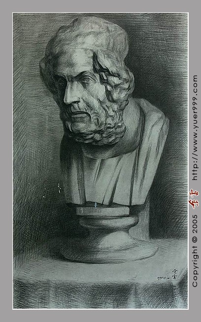 石膏写生(大学里的课堂习作)——碳铅笔素描